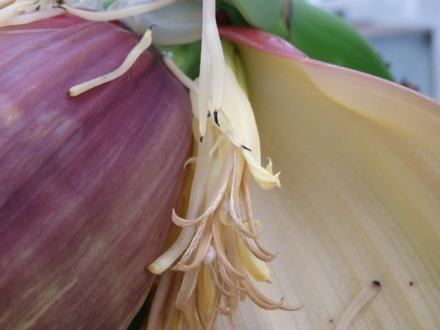 苞葉と呼ばれる葉の内側に並んで咲いています