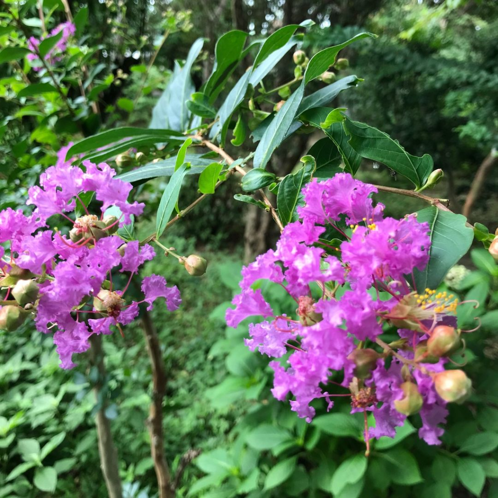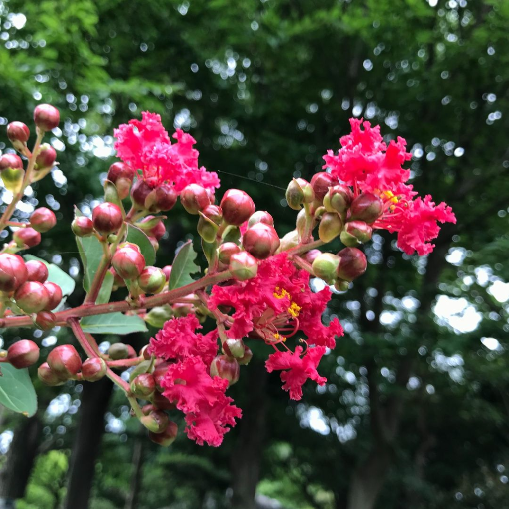 2022年07月21日 サルスベリ 場所:西園 ナチュラルガーデン近く 明るく夏を感じさせてくれる花◎サルスベリは「百日紅」と言われるくらい、花が長く楽しめるそうです(*^^)bサルも滑ってしまうというツルツルの幹にもご注目♪