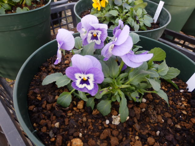 お披露目されるパンジーたちは温室内で元気に育ってきています。