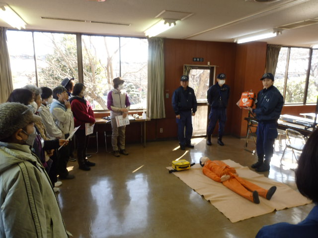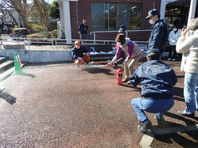 2026年02月09日 消防訓練を行いました 多摩消防署宿河原出張所様のご協力のもと、消防訓練を実施しました。緑化センターボランティアのみなさんも参加し、消火器やAED(自動体外式除細動器)の使い方を教えていただきました。※緑化センターではAEDは管理事務所に設置しています。 消火器の使い方説明 AEDの使い方