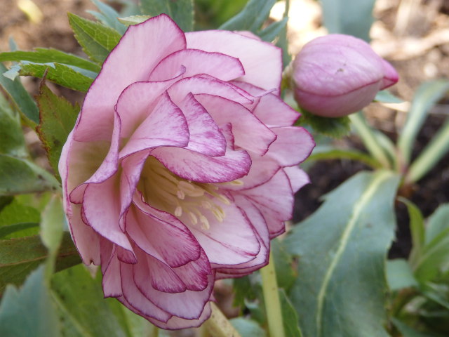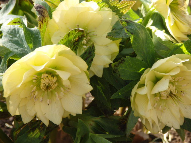 2026年02月27日 クリスマスローズあれこれ 東園の二ヶ領用水沿いのフェンス下や西園芝生広場ショウブ池手前でクリスマスローズが見頃を迎えています。うつむきがちに咲いているので、下からのぞきこんで花の形を楽しんでみてください。