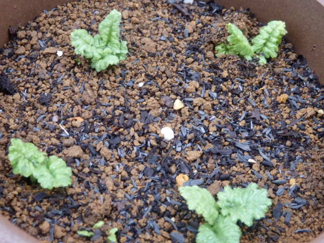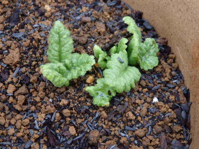 1月に植え替えたサクラソウが鉢の中から芽を出しました。