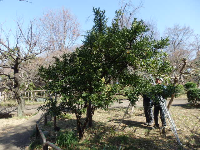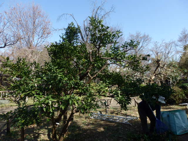 今日は西園にあるカンキツのユズを剪定しました。