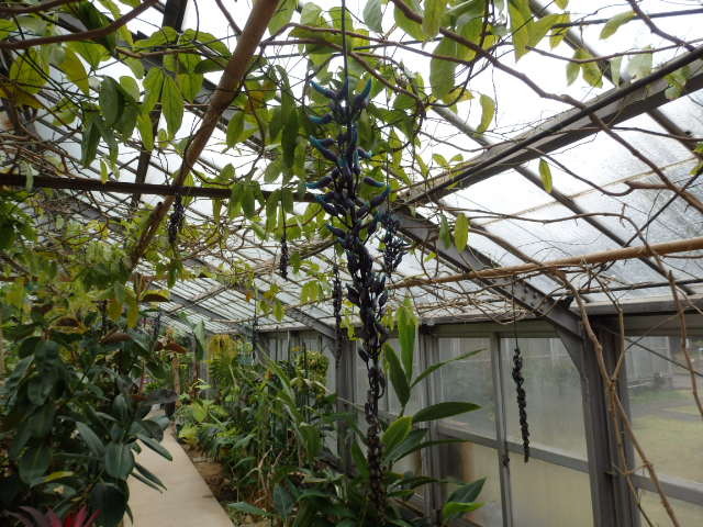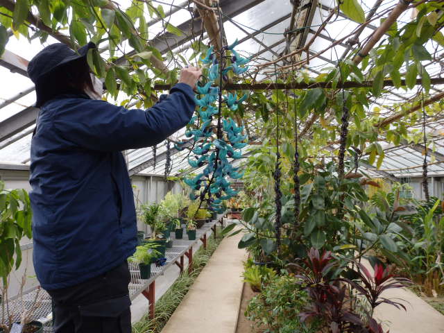 緑化センターで人気のヒスイカズラの花房を誘引をしました。