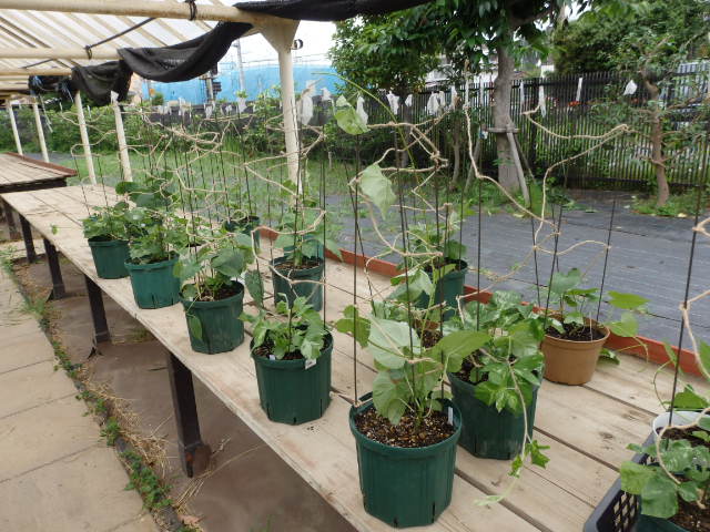 今日の校外学習の作業では、アサガオに支柱を立てて誘引できる準備をしました。