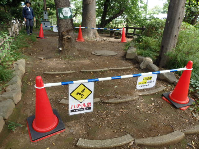 クヌギの樹液を吸いに、スズメバチが集まってきています。