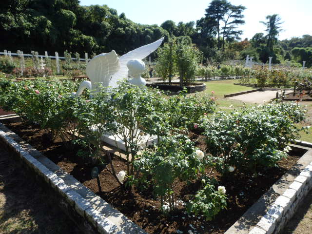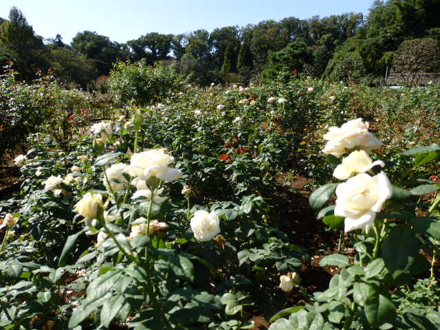 2025年10月17日 生田緑地ばら苑へ出張しました 16日から開苑した生田緑地ばら苑で緑化センターのPRブースと緑化相談コーナーの出店を行いました。バラの開花は2~3分咲き程度でしたが、今日は気温も高くこれからどんどん開花していきそうです。 マチルダ 銀嶺 しのぶれど