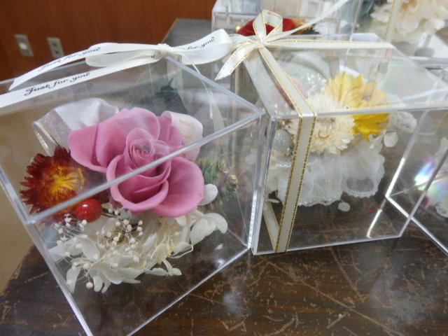 おまつりは中止となりましたが、午後にははるひ野プリザーブドフラワー倶楽部さんによる、プリザーブドフラワーアレンジメントのワークショップを行いました。