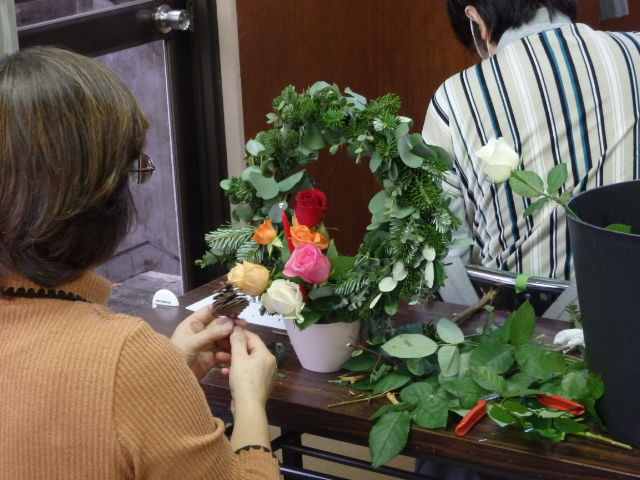 リースをオアシスに取り付ける作業が大変のようで、みなさん苦戦されていました。