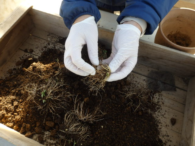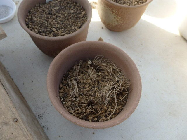 この時期は地上部に葉がほとんど展開していないため、土を返してみないと芽や根が元気かどうか分かりません。毎鉢毎鉢、ハラハラドキドキの瞬間です。