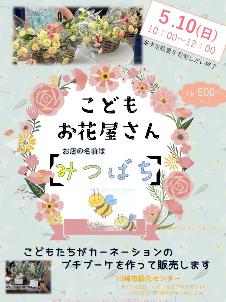 5月10日(日)こどもお花屋さん プチブーケの販売を行います